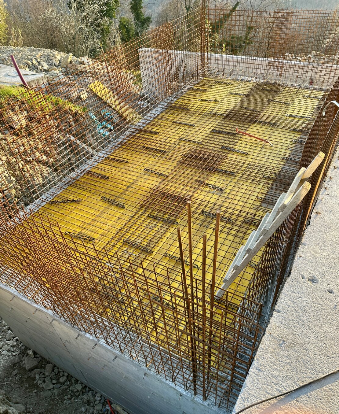 Die Ploca für den Poolboden ist geschalt und armiert.