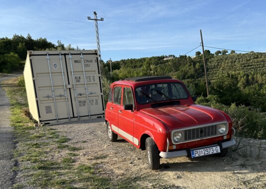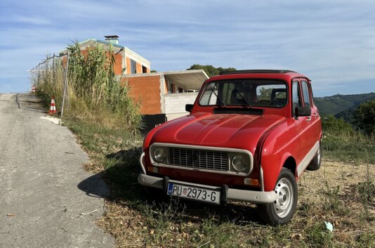 "Braco", gesprochen Brazo, ist ein sanft restaurierter Renault R4 GTL Baujahr 1989. Auch schon wieder 37 Jahre her. Er stammt noch aus slowenischer Produktion und erlebte damals in Rijeka seine Erstzulassung. Dort fuhr er bis zu seiner Restaurierung immerhin über 218.000km im Straßenverkehr. Der Restaurierer hat ihm zum neuen Lack auch gleich eine Anhängerkupplung und ein Rolldach spendiert. Braco`s 34PS werden hier bei uns nicht mehr so hart rangenommen. Regenfahrten und gesalzene Strassen sollen ihm erspart bleiben. Auf das er bei uns seine besten Jahre erleben wird! Er soll hier nur für "Feel Good-Momente" zum Leben erweckt werden und weil der Helmut ja was zum Schrauben brauch...